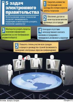 Суть модернизации государственной системы состоит в том, что госаппарат должен выполнять работу в интересах каждого члена общества, налогоплательщик должен четко понимать, на что идут его деньги и влиять на распределение бюджета. А доступ к госуслугам, которые предоставляются за деньги налогоплательщика, должен быть предельно простым. Кроме того, важна и система отчетности — власть должна в режиме реального времени четко понимать, что происходит в стране и своевременно вносить корректировки в экономической политике. Инструмент для реализации этой идеи — электронное управление страной.